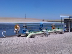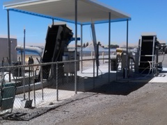 Plant size is currently at 1.55 MGD with an average monthly flow of 1.1 MGD. Wastewater Plant consist of two complete mix aerated lagoons operated in parallel, and two partial mix aerated lagoons operated in series. Each lagoon has an operating depth of 12 ft. and has a detention time of 3 days at design flow. Flows enters plant through 18” and 24” diameter gravity sewers, which discharge into two separate headworks structures made from concrete and both have mechanically cleaned barscreens. Screenings are pressed and collected in a plastic bag and disposed of as a solid waste. From heaworks, influent flows into a manhole where streams are combined and metered and recorded through a magnetic flow meter. Then flow enters a splitter box where flow is split and gravity flows into lagoon 1a and 1b. theese lagoons provide the primary aeration of incoming flows. Most of settleable solids will settle out and undergo anaerobic digestion on the lagoon bottoms. From lagoons 1a and 1b, the primary treated wastewater flows by gravity through flow control structures and buried piping into lagoon # 2. Flow in lagoon also goes through same treatment process as lagoon 1a and 1b. From lagoon # 2, wastewater is pumped to lagoon # 3. The pump station has 3 constant speed pumps. The operator varies the number of pumps online, which sets the flow, based on the level of lagoons. From lagoon # 3, treated wastewater flows by gravity through a flow control structure and buried piping into one of the 3 storage reservoirs, with the capacity of 472 acre feet of storage. A recirculation line draws water from pump station and discharges into incoming untreated wastewater. Recirculated water is also used for washdown water at headworks. Recirculated flow is designed to initiate bacterial activity in incoming wastewater. All treated effluent flows into the storage reservoirs are disposed of onsite by agricultural irrigation on city owned farmland.